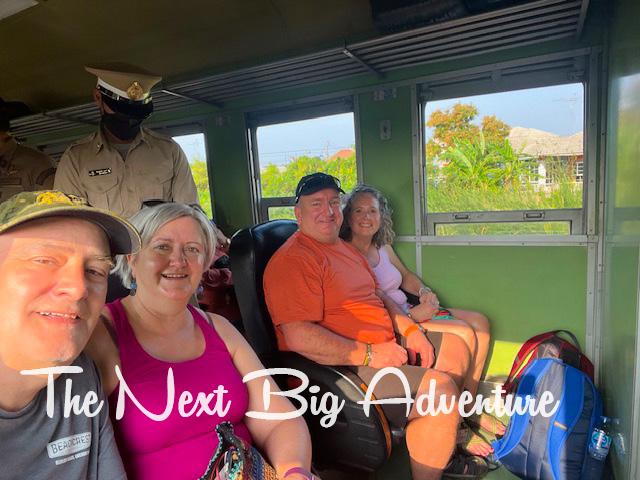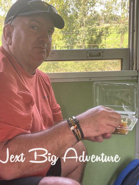 The train ride from Ayutthaya was around five hours of sheer fun. We rolled along the countryside, stopping in several small towns for passengers to get on and off, and enjoyed a variety of “train food” sold by the vendors who jumped on and off at the stations. With our early morning departure, our 2nd-class non-aircon seats stayed at a pleasant temperature. I do love train travel.